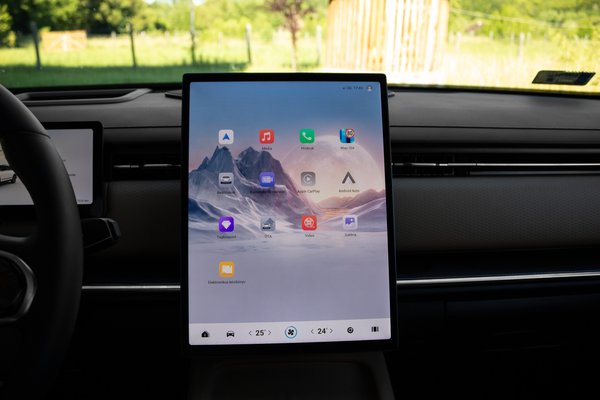 Körülbelül félúton járhattunk a román határ felé, mikor szembesültünk egy apró, de bosszantó problémával. Szerettük volna egy fokkal feljebb venni a hőmérsékletet, de ez meglepően bonyolult feladatnak bizonyult. A Jaecoo 7 utasterében szinte egyáltalán nincsenek gombok, majdnem az összes beállítás a központi kijelző valamelyik menüjébe került. Bár én kifejezetten nem szeretem ezt a megoldást, szerencsére a leggyakrabban használt funkciókat - a klímát is beleértve - a képernyő alján található tálcáról is elérhetjük. Csakhogy ez a hasznos tálca eltűnik, ha a központi kijelzőt birtokba veszi az Android Auto vagy az Apple CarPlay. Macerás, de vélhetően begyakorolható művelet.