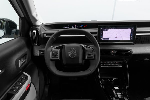Az ergonómia rendben van, a kilátás a viszonylag vastag A-oszlopok ellenére is megfelelő, a tükrök előre- és hátramenetben is jól használhatók, sőt, még a tolatókamera képminősége is meggyőző. A 10,25 colos érintőképernyő lebegni látszik a műszerfalon, az említett kamerán és a vezeték nélküli telefontükrözéstől függetlenül a Max szinten járó navigáción túl nem sok mindenre használható, a beállítási lehetőségek minimálisak. Az egyébként kifejezetten szép hangon megszólaló, 6 hangszórós hifit persze szintén ezen keresztül vezérelhetjük. Az ë-C3 vevői nem is szívesen nyomkodják.