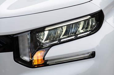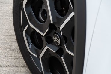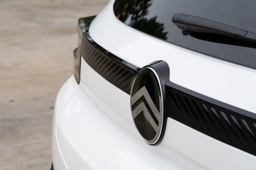 A legkevésbé sem tipikus Citroën, ettől függetlenül harmonikus a lekerekített dobozforma, nekem legalábbis tetszenek a túlzásoktól mentes, letisztult vonalai. Masszív autónak látszik, és van rajta néhány franciásan kidolgozott részlet: a LED-es első és hátsó lámpák, a fekete, vagy színtől függően fehér tető, a 17 colos, esztergált felnik vagy éppen az emblémák. Szép a klasszikus logó, és a tetősínbe dombornyomott márkanév is igényes megoldás. Szellemes ötlet a műanyag betétekbe nyomott Citroën-féle fogaskerék minta, a kedvencem mégis a két pont a típusjelzés e betűjén.