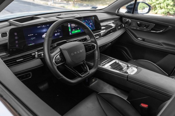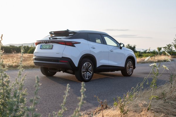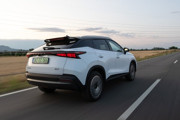 Azonnal feltűnik a jellegzetes műanyag szag hiánya az utastérben. Ahogy beülök, minden normális, miközben az első körös autókra azért jellemző volt a furcsa szag. Most sem ebben, sem az utána érkezett benzines kivitelben, sem a Jaecoo modellekben nem érezni, ez mutatja jól a kínaiak rekcióidejét, minden visszajelzésre igyekeznek hamar érdemi fejlesztéssel válaszolni. A korai autókban az ülés magasságát sem lehetett állítani, ezekben már lehet, méghozzá elektromosan.