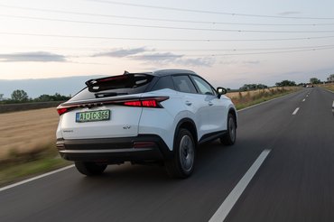 Kétféle csomagban készül az Omoda 5 elektromos változata is, hasonlóan a benzineshez. A Comfort és Premium között félmillió forint a különbség, utóbbiban 360 fokos kamera rendszer, elektromos állítású első ülések, nyitható napfénytető és 2,5 mikronig szűrő pollenszűrővel ellátott szellőztető rendszer tartozik, és a csomagtér is motorosan nyílik. Ehhez képest az alapváltozat is ad tolatókamerát, hátsó ülésfűtést, 10,25 colos multimédiát vezeték nélküli okostelefon integrációval és az elég jó hangzású nyolchangszórós Sony hifi rendszerrel.