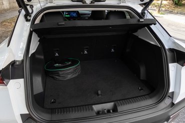 Kifejezetten kényelmes ülésben kapok helyet az Omodában, a háttámla magas, némi oldaltartást is érzek, az ülőlap dőlése nem állítható, de ez nem is elterjedt funkció a kategóriában. Szépek a varrások, a dizájn az én szememnek szintén elfogadható és hátul sincs vele gond, az általánosan elfogadható minőség pedig a második sorban is egységes. Fűthető a két szélső ülés, ami főleg hideg időben, a műbőr üléshuzattal igazi áldás az utasoknak. 360 literes csomagtartójával a kategóriában a kisebbek közé tartozik, a helykihasználás lehetne ügyesebb is, mert így még a töltőkábel sem fér alá, elöl pedig nincs frunk.