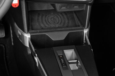 Vezeték nélküli töltőpad csak a kijelzős csomaggal együtt jár, USB csatlakozókat azért mindenképp szerelnek bele. Tele a kormány normális kattanási érzetű gombokkal és ott a klímakonzol is, amit lehet nyomkodni, de bal oldalt van gyorsgomb a táblafelismerő pittyegésének deaktiválására is, ez mindenképp örvendetes. Maga a volán kialakítása szemre furcsa, az opeles Vizor formáját követi és a vastag küllők miatt forgatni nem a legjobb, minőségérzetre viszont nincs vele gond.