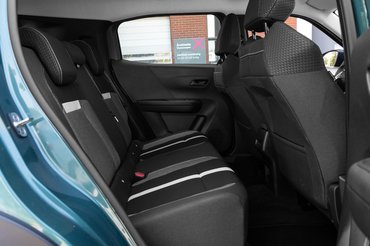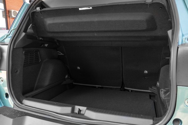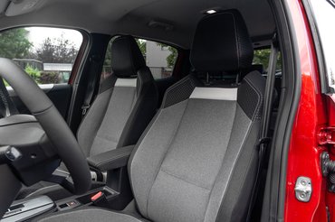 A hátsó ülés sajnos nem tologatható, így csak lehajtással növelhető 1600 literre a poggyásztér, cserébe mindenki kap USB-C csatlakozót és elektromos ablakot. Anyagaiban valahol a minimális és az éppen egy kicsit jó között mozog a szint a hátsó sorban. A teli fröccsöntött műanyagból készült ajtókárpit mellett az összetett, szürke szövet üléshuzat már-már üdítő részlet. Az ülőlap tömésétől és formázásától szintén ne várjunk sokat, itt érezhető a spórolás.