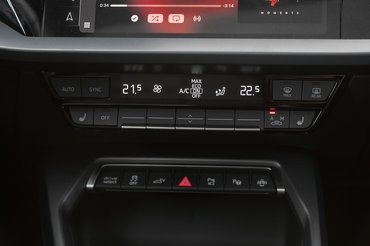 Az A3 belsejét tisztességgel összeszerelték, az anyagok is rendben vannak, tényleg prémiumnak tűnik a termék, de van, ahol kissé kilóg a lóláb. Azt mondják, hogy finomítottak az anyagokon, ami valószínűleg így is van, mégis maradt néhány karcos részlet: recsegő műanyagokat semmilyen formában nem szeretnék tolerálni egy Audiban. A helyzet nem gáz, de ennyi is képes finoman aláásni az egyébként remek minőségérzetet. Az előbbi miatt a homlokomon redőssé váló bőrt egy kellemes sóhaj kíséretében kisimították a klíma fizikai gombjai. Az iménti, érzelmileg felfokozott hangulatomat tovább mélyítette, hogy a kormányra is jutottak rendes, nyomkodható kapcsolók, és nem érintős szörnyűségekkel kellett küzdeni.