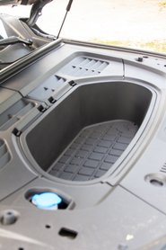 A bőséges térkínálat miatt viszont csak 435 literes a csomagtartó, amely ránézésre sok mindenre elég, de kategóriájában alulmarad (Tesla Model Y 854, Peugeot 5008 748, Mazda CX-60 570 liter). Mondjuk van egy 32 literes első csomagtartója, ami mindenképpen előnyös, de azzal együtt sem nagy a kapacitás.