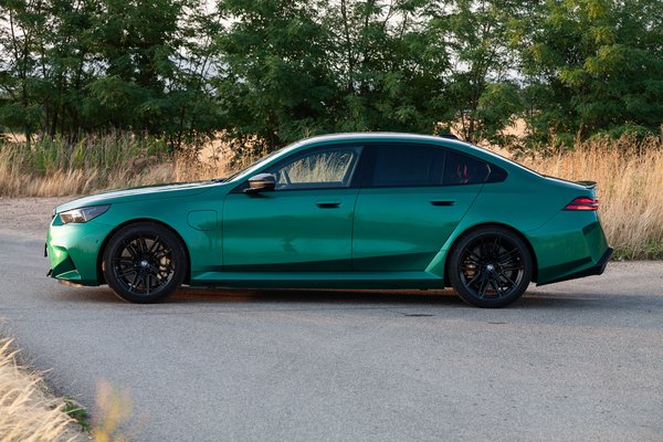 Váratlan, de az aurája nem fenyegető: elsőre agresszívnek látszik, igazából azonban olyan a kisugárzása, mint egy jószívű nehézsúlyú bokszolóé. Nem baszakodnál vele, és kioszt egy nevelő célú sallert, ha mégis, de ahhoz neked kell először ütni. A dizájnerek értették a feladatot, az M5 pontosan olyan tesztoszterontól tocsogó, szimpatikus túlzás, amilyennek lennie kell. Biztosan megosztó: én speciel ösztönös ősemberként imádom – különösen ebben a pazar Isle of Man metálzöldben –, de azt is megértem, ha neked sok.