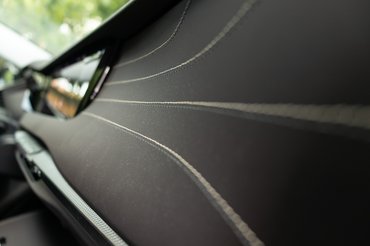 Pedig hálám a drága francia dizájnereknek, amiért egy ilyen elegáns autóban képesek voltak minimalizálni a fényes felületeket. Az egyedi kormányon, a középkonzol apró felületén, a kijelzők két szélén és az ajtók néhány díszelemén túl vagy fémhatású felületek vagy bőr borítja a szépen formázott idomokat. A műszerfal jobb oldalán a varrások a repülőgépek által húzott csíkokat imitálják, hiszen egy Antoine de Saint-Exupéry kivitel volt a tesztautó, ami a híres francia humanista, mesemondó, repülőgép pilóta, tudós és művész előtt tiszteleg. Ennek oltárán egyébként a küszöbökbe is egyedi mintát égettek, míg a kijelző mellett egy keskeny emléktábla emlékezteti az autót használókat. Ezen túl már csak Criollo barna nappabőr része a különleges kivitelnek, de ez talán inkább a felhasználóknak szól, mint sem Antoine de Saint-Exupéry-nek.