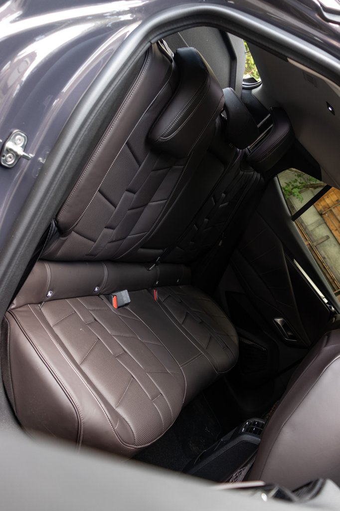 Főleg, ha a hátsó sorba száműznek időnként: a kupés tetővonal oltárán beáldozták a függőleges kapacitást és az én 178 centimmel még éppen nem karcoltam a plafont. A térdemnek sem volt sokkal több hely, az első ülések tömése húsos, a háttámla vaskos, így, ha a sofőr és a térdem között bruttó értelemben sok hely is van, a háttámla nincs messze a lábaimtól, nem kell sokat nőnöm még ahhoz, hogy kényelmetlen legyen.