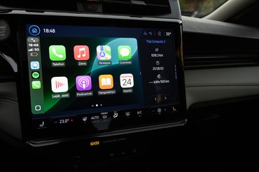 A sofőr tételesen megnézheti a fogyasztási értékeket akár fogyasztók szerint, kördiagramon is, és ha a gyári online navigációval töltőhöz tervez, el is indítja az akkutemperálást, hogy elérhesse a maximális, 100 kW teljesítményű DC-töltést: nagyjából 23 perc alatt tölt 10-ről 80 százalékra.