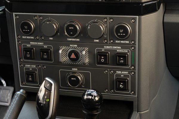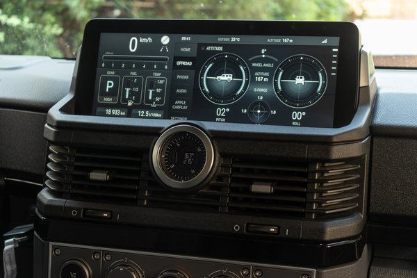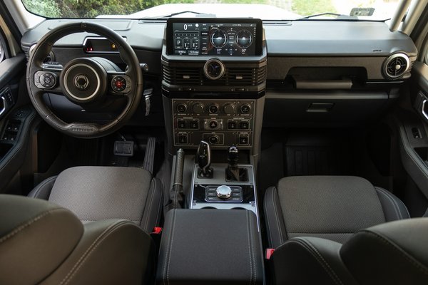 Néhol azt érzem, hogy a dizájn felülírta a funkciót, miközben mégis az off-road során leginkább lényeges ergonómián volt a hangsúly. Nem engedhették meg maguknak, hogy egy nagy tabletre felpakoljanak mindent, még egy kitaposott erdei ösvényen is úgy dobálják a fagyökerek a kerekeket, hogy istennek se találnád el a kijelzőn amit akarsz, egy óra után pedig ököllel ütnéd át az érintőpanelt. Viszont a másik végletet is sikerült a túltolni, mert nem csak sok a gomb, de hatalmasak és robusztusan néznek ki. Ráadásul az egészet egy helikopter utasteres dizájnnal koronázták, mivel állítólag Ratcliffe a repülésért is rajong.