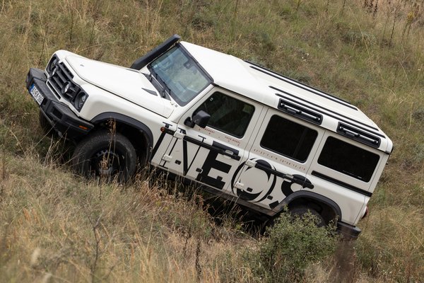 Érzem én a funkcionalitás és a dizájn egyensúlyát, a látványosan felpolírozott imbuszfejű csavarokkal rögzített középkonzoli panelekről elhiszem, hogy Afrika bármely kereszttengelyét átívelve is a helyükön maradnak, miközben az utas kapaszkodója és majrévasa sem szakad le sikongatás közben. Nem szól az utastér, pedig vaskos anyagok vesznek nagy lendületet minden bukkanón, terepen pedig ezekből nincs hiány. Közben az is igaz, hogy az Ineos alatt rendes mozgásteret engednek az Eibach progresszív rugói és a többlépcsős csillapítás. A tengelyek legfeljebb 9 és 12 fokban képesek elcsavarodni, ami azt jelenti, hogy egymáshoz képest átlós kerekek között akár szűk hatvan centi eltérés is lehet magasságban.
