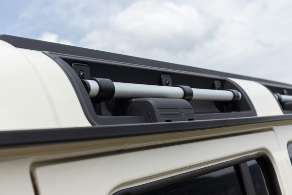 Innen lehet válogatni a különböző off-road műszerek között, amik sokat segítenek ha feszegetjük az autó korlátait, azonban a funkciók működtetésére hivatott panel a tetőbe került – ez még inkább helikopteres élményt nyújt. Néha csak a plusz beköthető funkciókat lökdöstem, mivel a kapcsolásérzetük rendkívül feszes és mechanikus: minden átbillentés egy hangos klattyanással jár, mintha a HÉV szerelvények elejében csattogó óriási kontaktorok kielégítő mechanikus zaját hallanám, miközben egyelőre funkció sincs rajtuk. Kár, hogy a mindenre finnyás diffizárak csak gombokat kaptak, pedig zsíros kapcsolókkal csillapíthatnák, hogy csak egy bizonyos menetmódban lehet őket bolygóegyüttállás közben rákapcsolni és akkor is lefőzök, majd vajas süteménnyel elfogyasztok egy fekete teát, mire végbemegy a zárás folyamata.