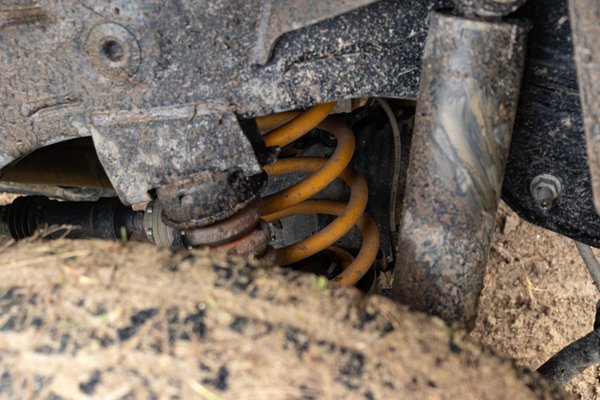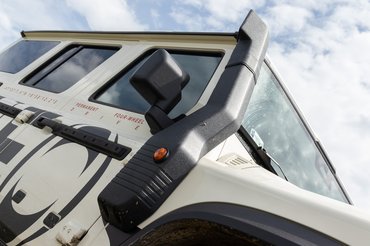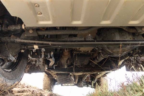 Az első és a hátsó hidakat is öt-öt karral fogják az alvázhoz, így elég ellenálló a futómű, de felépítéséből fakadóan még így sem tud teljesen egyenesen menni. Közúton gyakran kér enyhe korrekciót a kormány, terepen pedig egyszerűen nem érdekel, mert vagy nem mész gyorsan, vagy direkt lengeted az autót, had repüljön a porban keresztbe. Egyébként is hajlamos lengedezni a hátulja, mivel hiába az alumínium BMW motorblokk, így is érezhetően orrnehéz a Grenadier. A fotókon is észrevettem egy átcsapatott nap után, de a nagy sebességű terepezésnél is érezni, hogy a hátsó kerékjárati ív mindig nyitottabb, mint az első.