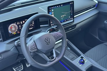 Még a feszesebb R-Line kivitelnek is maradt elég rugózási komfortja, miközben szeme sem rebbent, amikor egyik ívről a másikra lendültünk át. Egy ilyen viszonylag magas autónál nem mindegy, hogy mennyire nagy a karosszériadőlés, viszont az is megnyugtató, hogy akinek a komfort fontosabb, a polgári kivitelektől még többet kap belőle. Tetszett a kormányzás is, és a lágy hibrid rendszerből kihozott 150 lóerőt is optimálisnak éreztem. Kicsi, de fontos előnye a hajtásláncnak, hogy 3000-es fordulat fölött kifejezetten szép motorhang szűrődik be a más körülmények között csendes utastérbe.