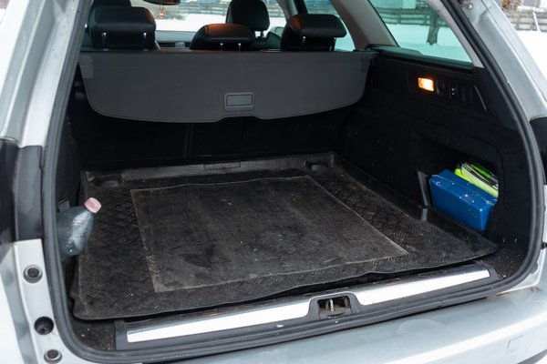 Miután felemelkedett a kőfal, fél köbméteres kripta tárul eléd igényes fém betétekkel és praktikus, hálós rekeszekkel. A habarcsos zsákkal sem kell annyit harcolni ha a csomagtartó apró billenőkapcsolójával lejjebb engeded néhány centivel a hátsó futóművet és hidd el, hogy ilyen helyzetben az is számít. De volt ebben a csomagtartóban már több benzinmotoros fűkasza, fából készült hűtőszekrény és teljes szett családi nyaraláshoz is. Ezeknek mind megvannak az enyhe nyomai, azonban a műanyagok jól viselték az éveket, a gumitálca pedig fontos szerepet játszott az állagmegóvásban.