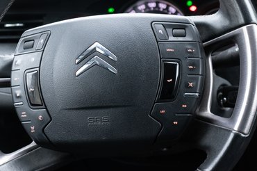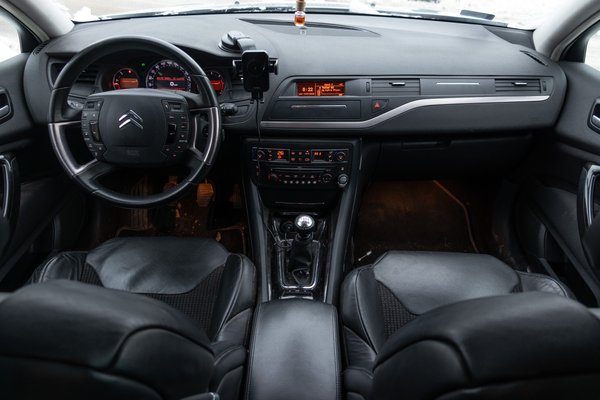 A beszálláshoz verekedni kell, főleg ha emelkedőnek felfelé parkolsz. Az ajtóhatárolók már régen elkoptak, ez Tamás szerint típushiba. Csak recseg-ropog nyitásnál, de nem fogja az ajtót, így az állandóan neked vágódik. De ha bejutottál, onnantól nem érdekel, a C5 nagyon finom. Gyújtásra a kor szerintem egyik legszebb műszercsoportja ébred fel, a kerek csövekben kintről befelé néző mutatók úsznak a számlapokon, közöttük pedig korrekt felbontású LCD kijelzők közölnek mindent. Pixelhibának nyoma sincs, mind a főképernyő, mind a két segédkijelző pontos és jól működik.