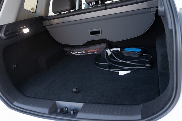 Mondjuk vannak ott még más vonzó extrák is: a panoráma napfénytető, a head-up display és az elektromos csomagtérajtó is király, bár nem nélkülözhetetlen extra, a Tiggo 7 plug-in hibrid még alapfelszereltséggel is korrekt. Itt nincsenek kisebb kijelzők, butább grafikák vagy vakgombok – legfeljebb kettő a kormány alatt bal lent – csak egy jó hangulatú, egészséges összkép, amiből még az egy nagy hajlított idomra felhúzott kijelzők sem lógnak ki. Az összeszerelési minőség kiváló, elektromos módban gurulva sem hallatja hangját egy lazább patent vagy sercegő illesztés és annak a kevés gombnak a nyomásérzete is rendben van.