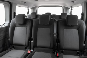 A kiterjedés egyértelmű előnye, hogy belül akkora, mint egy kisebb budapesti garzonlakás. A lábtér és a fejtér praktikusan végtelen, a csomagtér még nyolc üléssel is közel egy köbméter. Mentünk már messzire a haverokkal a Caravelle tesójával, egy szintén hosszú tengelytávos Tourneo Custommel, és gondolom nem meglepő, hogy hat ember és mindenki több napra elég cucca kis túlzással lötyögtek benne.