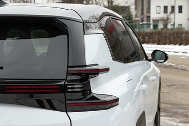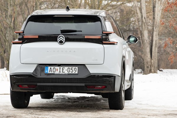 Bátor a forma a karosszériából kinyúló hátsó lámpatestekkel, a markánsan domborodó övvonallal, és a furcsa alakú fekete betétekkel, de ez a fehér alapszín is sokat segít a hangulatán. Kettős csíkozású hátsó lámpáit valószínűleg könnyen felismernénk a versenyünkben, a minimalista Citroën-logó pedig szintén jól áll neki, én a platformtársaihoz képest is felismerhetőbbnek, megjegyezhetőbbnek, stílusosabbnak érzem a C5 Aircross külsejét, de mindenképpen valami világos színnel adja ki igazán.