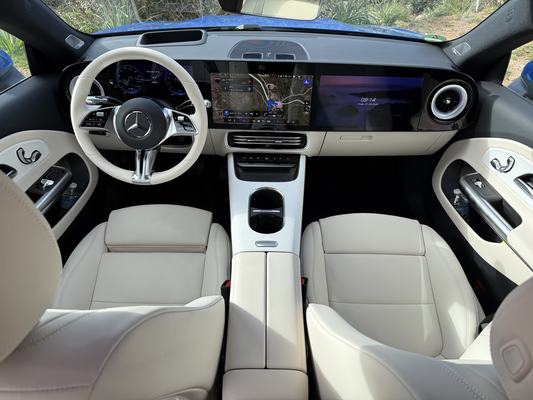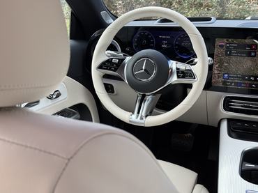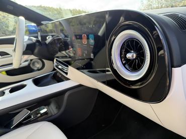 Bármilyen romantikával is tekintek vissza a Mercedes előkamrás dízeleire, valójában már kevesen vágynak rá és nem is passzol a modern vonalakhoz a dízelkerregés. Milyen is lenne a kulcsot elfordítva felébreszteni a csúnyán klattyogó négy és hathengereseket úgy, hogy közben egy döbbenetes mozivászon feszül az arcodban a világ összes kijelzőjével. Na jó, költői túlzás, de tényleg letaglózó, amikor egy 26 és két 35,6 centis képátlójú kijelző világít egy a műszerfal helyén lebegő, élére állított dunai kompon. A Mercedes is hisz a központi kijelzőn egységesített funkciók intézményében, de nem tudom olyan intuícióval vádolni a rendszert, mint a Tesláét. Pedig érezhetően sokat dolgoztak rajta, gyors, éles és végül is logikusan építkező rendszer. Az egész működését egy vízhűtéses számítógéppel támasztották meg hátulról, a kijelzőkön pedig Unity Game Engine fut, hogy az élességen túl már-már realisztikus is lehessen a kép. Nekem csupán az az érdekes, hogy a felárért kapható harmadik kijelző – az utas előtt – a sofőrülésből is tisztán látható, legfeljebb kikapcsolgat ha gyakran átnéz rá. A mérnökök szerint a betekintésgátló felület rontotta volna a képminőséget, ami prioritást élvezett.