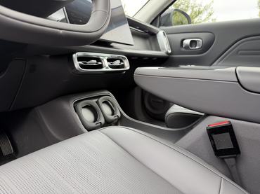 Jól mutatja 2026 felfogását, hogy mennyit rugózok egy egyszerű fedélzeti rendszeren és mennyire elsiklok olyan dolgok felett, mint hogy a B10 ülései kényelmesek – akár hosszabb távon is – a helykínálat pedig parádés. A magamra állított első ülés (178 cm) mögött ordas nagy helyem maradt a második sorban és az autó közel 1,9 méteres szélességével széltében sem fáj. Ez utóbbit jól mutatja a húsos középkonzol is, ami egyrészről töltő, másfelől ide kell érinteni a kártyát, amivel az autó indul. Alapból inkább az okostelefonnal való működtetésre támaszkodtak a nyitás-zárás és indítás folyamatainál, enélkül egy bankkártya szerű eszközt kell érinteni a tükörhöz, vagy a már említett középkonzolhoz – ennél sokkal kényelmesebb a telefon.