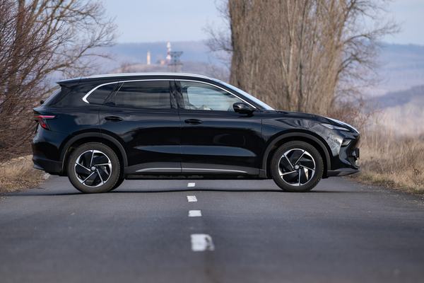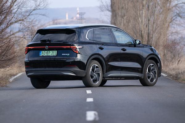 Az eleje egy fiatalos, sportos és abszolút aktuális dizájnelv szerint készült, látni benne a korszerű vonásokat és kínai villanyautókra jellemző megoldásokat, hátrafelé azonban egy hagyományos SUV. A hosszan elnyújtott egyeneseken és gömbölydedre rajzolt sarkakon abszolút érezni, hogy a praktikum volt előtérben, így az autó eleje nehezen összeegyeztethető a hátuljával. Ennek nyilván megvan az az előnye, hogy az alaktényezője miatt jól bánik a kaszni körül áramló levegővel és az MGS5 EV még nagy sebességnél is csendes, csupán valahol 110-120 km/h körül jelenik mag szélzaj az A-oszlopok környékéről. Közben az utastérben rengeteg hely van annak ellenére, hogy egy alig 4,5 méteres crossover.