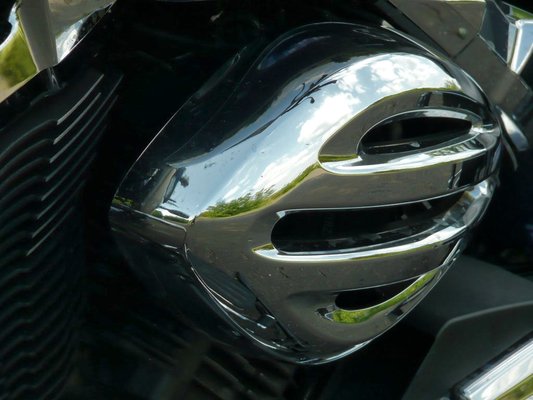 A 950-es blokk azért érdekes, mert ez a Midnight Star sorozat legfrissebb motorja. 942 köbcenti, hengerenként négy szelep és léghűtés, 60 fokos hengerszög és elékelt főtengely. A régi vágású harley-s járás kedvéért elékelték a főtengelyt oda-vissza 60 fokkal, így most 300 és 420 foknál van a gyújtás. Hát nem tudom, magamtól valószínűleg sose veszem észre, az emissziós normák miatt meg aztán végképp nem lehet olyan alacsony potato-potato-alapjáratot csinálni, mint egy Hogon. De persze a japán mérnök még kiegyensúlyozó tengely nélkül se tud egyenetlen alapjáratot előállítani, úgyhogy fogalmazzunk úgy, a Midnight Star 950-ben benne van az egyenetlen járás ígérete. Csak kell hozzá egy kis szoftveres mókolás.