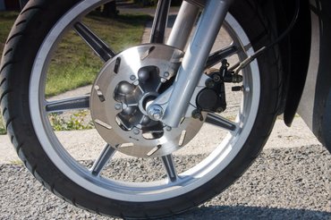 Viszont, ha szeretnénk a nullához közelíteni, már nem ennyire jó a helyzet. Lényegében csak az első fékre lehet számítani, ami szerencsére tárcsafék és rendesen harap is. Hátul dob van, ami lehetne akár jó is, de ez alig fog; a bal fékkar gyakorlatilag csak arra van, hogy indításkor meghúzva biztonsági kapcsolónak használjuk. Nem baj, legalább nem kell attól félni, hogy blokkoljuk a hátsó kereket, egy idő után hozzászoktam, és kész.
