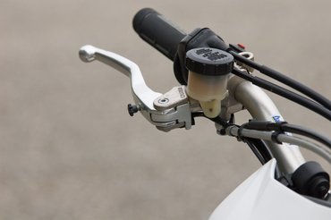 Az ereje mellett a betét gyors behelyezhetősége is előny, a cseréhez nem kell eltávolítani a nyerget. A hidraulikus kuplung szintén Magura. Akárcsak a többi Husabergnél, karját ütésállóra tervezték, 90 fokban képes visszahajolni.