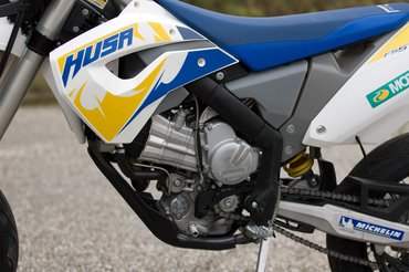 Már az 1988-ban megjelent ős is feltűnést keltett. Ugyanekkorát durrant a tavaly bemutatott széria: a 70 fokban bólintó henger, a főtengely alá szerelt váltó szokatlan és nehezen emészthető volt. Rengeteg terepes aggódott, de az eltelt egy évben az FE széria bizonyított. A furcsán álló blokkal eddig nem volt gyári supermoto, 2009 végére ez megváltozott: néhány héttel ezelőtt hivatalosan is bemutatták az FS570-et.