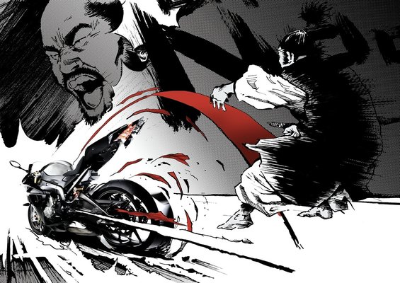A vizuális eszközök világosak: a pozitív hőst megszemélyesítő német motoros küzd minden ellen, ami számára ellenséges – a szumó birkózó és a gonosz szamuráj a konkurens japán sportmotorokat személyesíti meg. A száguldástól áramvonalként elkenődött szájú gésa az ártatlan, megmentésre váró személy; a felhasznált vizuális eszközök tökéletesen belepasszolnak a letisztult, vizuális metaforákkal operáló japán képzőművészeti és reklámgrafikai hagyományba.