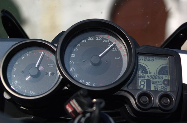 A kuplung nélkül kapcsolható váltó nem olyan gyors, mint a BMW K1300-ban, vagy a hasonló elven váltó pályamotorokban, ráadásul a váltásokhoz el is kell venni a gázt. De persze lassúnak se lassú – ha odafigyelünk, hagyományos váltóval tudunk gyorsabban kapcsolgatni, de túrás használathoz ez tökéletesen megfelel. És egy ennyire erős, alul ilyen nyomatékos motornál komoly, előre megfontolt kreténség kell ahhoz, hogy a nem megfelelő fokozat miatt veszélybe kerüljünk. Igen, a kérdés az, hogy én például adnék-e plusz hatszázezer forintot a kuplung nélküli váltásért: nem tudom. Néhány nap alatt odáig eljutottam, hogy elhiszem, működik, és két hét alatt el tudom képzelni a függővé válást is, de annyit nem volt nálam a gép.