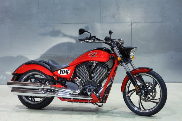 A motorja természetesen léghűtéses V2-es, 97 lóerős – ez az egyik legfürgébb gyári cirkáló. Nyomatéka tiszteletet parancsoló, 150 Nm. A luxusgépek visszaeső piacán az egyedinek és modernnek kinéző Victory sikeresen konkurálhat a Harley-Davidsonnal: sokan kedvelik a custom divatirányokra figyelő, szintén amerikai gyártót.