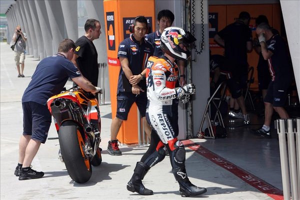 Dovizioso a legerősebb a hondás. Az időeredményekkel kapcsolatban persze Andrea is homályosít: „Egyáltalán nem a köridőkre koncentráltunk, főleg az Öhlins rugóstagokat próbáltuk hozzáállítani a stílusomhoz. Tavalyhoz képest ez hatalmas változást jelent.” Keveset mutatott Pedrosa, hiszen csuklóműtétjét követően jött Malajziába; rögzítő csavart szedtek ki az egyik csontjából.