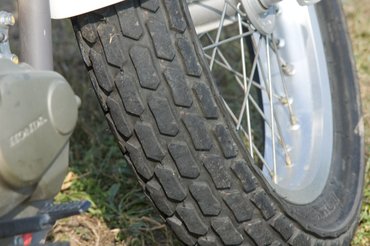 A tank pici, de térddel pont be tudjuk támasztani a sarkát. Ha tényleg földes útra jut a gépecske, magától értetődő a csúszkálós betyárkodás. A kormány 48 fokban dönthető, vékonyabb első gumival, ügyes gázkezeléssel és hátsó fékes stabilizálással akár 1 km/h-s tempóval is helyben fordulhatnánk. Oké, oké, így sem rossz.