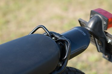 Az ülés szinte teljesen megegyezik a hetvenes években megszokottal – imádnivaló, hogy egy részlet sem lóg ki a koncepcióból. A komforttal sincs baj: kényelmes, személy szerint egész nap eldöngicsélnék rajta. A nyereg tövében örömteli felfedezés a fényes, fekete irányjelző – megoldhatták volna sima műanyag, húszfilléres vacakkal, mégsem tették. A retrót nagyon érzi a Suzuki, kár, hogy mi ezt csak a konténeres szürkeimporton látjuk.
