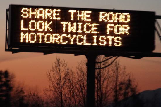 „Oszd meg az utat, vigyázz a motorosra, nézz körül kétszer!” – ez a jelmondat olvasható több mint 700 elektronikus kijelzőn, szerte az államban. Robert Gladden, az amerikai Biztonságos Motorozás Alapítvány igazgatója elmondta: „Alapítványunkon túl több ezer motoros tapsol a CHP, az Office Traffic Safety és a CalTrans kezdeményezésének. Örülünk, hogy végre felismerték a motorosok védelmének fontosságát, és annak, hogy felhasználják ezt a nagyon hasznos médiumot az üzenet terjesztésére.”