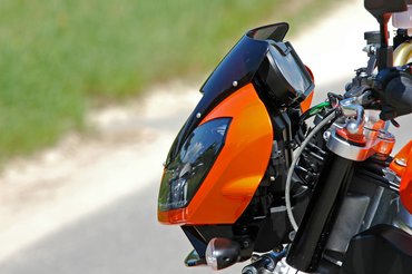 A lámpaidommal nincs semmi baj, de a ram-air miatt mintha rossz helyre csavarozták volna. A blokkon hiába a sok magnézium, nem mutat jól a meztelen motorban, látni, hogy eredetileg idomos sportgépbe szánták. Az alig tízkilós váz formája szerethetően agresszív, mégsem mutat sehogy. Ugyanígy bele lehet kötni a fenékbe is, de csak addig érdemes rinyálni, amíg fel nem ülünk.