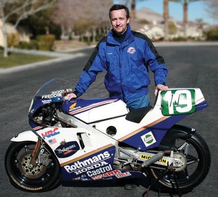 Az RMD Motors által most áruba bocsátott NS500-at háromhengeres kétütemű hajtja, 1983-ban segítette hozzá az amerikai versenyzőt az aranyéremhez. A másik gép 250-es; az NSR kéthengeres és szintén aranyat ért, hisz 1985-ben Freddie rendkívül sikeres szezont zárt vele.