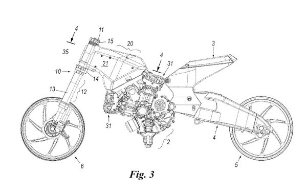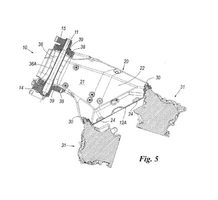 Most már biztos, hogy előbb-utóbb elbúcsúzhatunk a Ducati gyönyörű térhálós vázaitól. Az alábbi rajzok a szabadalmi hivatalból származnak: a blokk átveszi az eddigi konstrukció helyét, a futóművet mindössze csavarozott szerkezeti elemek tartják majd.