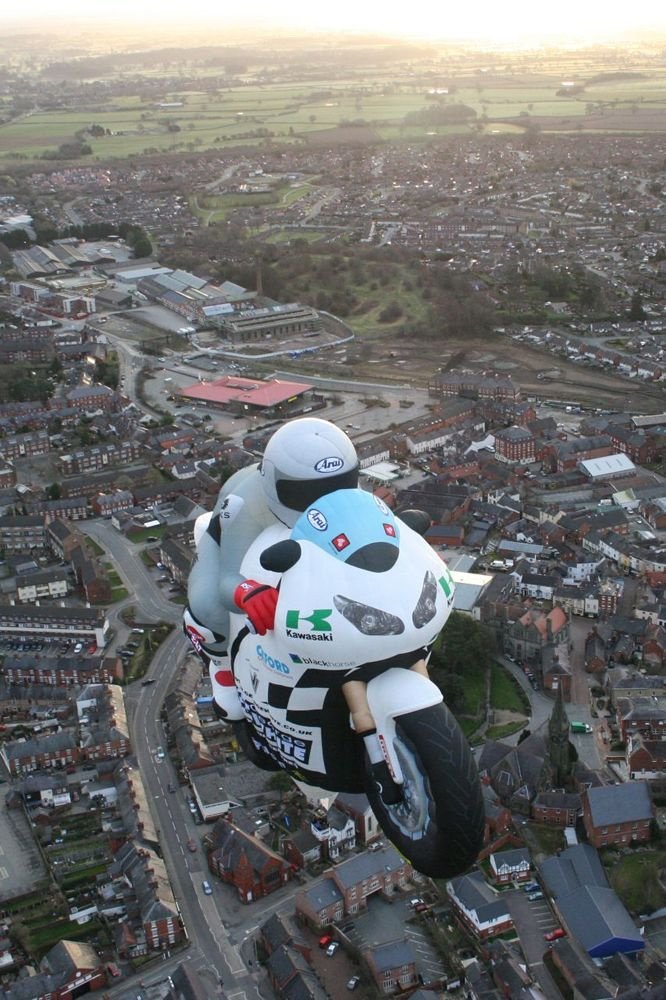 Reklámcélokra varrták, tulajdonosa, egy angol kereskedő motorversenyek és kiállítások alatt szeretné reptetni. A 37 méter magas és 47 méter hosszú hőlégballont a szakértők az egyik legbonyolultabbnak tartják – biztos, hogy a szabásmintája sem volt egyszerű. Méretaránya 23:1-hez, tömege 562 kiló. Maximális felszálló tömege 1700 kiló; 4+1 személyt szállíthat.