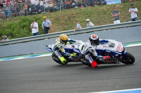 Egyedül Pedrosa csapatfőnöke sejtett valamit, aki versenyzőjének téves információkat tábláztatott be: fele olyan távolságot közte és Lorenzo között, mint ami volt valójában. Naivan azt hitték, hogy Dani csak simán spórol, és ha majd megmondják, hogy az ellenség markában van, akkor majd menekülni fog. Aztán a 26-os köridejei nem változtak, csak a távolság apadt pontról-pontra közte és Jorge között. A vége előtt két fordulóval már teljesen világos volt, hogy második világháborús tankok is követhetnék csőre töltve, Dani akkor sem tudna már ennél mélyebbre dönteni, ennél rövidebbet fékezni, ennél hamarabb kigyorsítani. Ennyi volt benne, Lorenzóban meg valószínűleg több, hiszen az utolsó előtti körben elkezdte letolni a pályáról honfitársát.