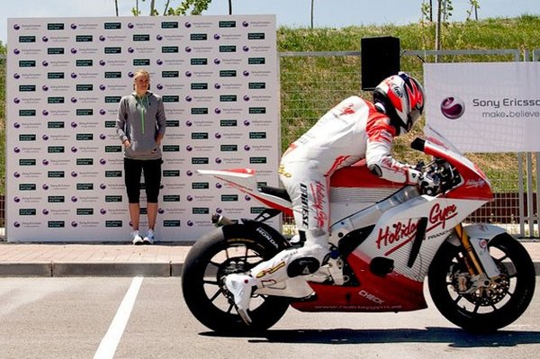 Maria Sarapova legyorsulta a Moto2-ben versenyző Fonsi Nietót. A Moriwaki pilótája száz méteren mérte össze tempóját az orosz teniszcsillaggal: az egyik a hatszázas Honda erejét használta, a másik a szervájával állt rajthoz.