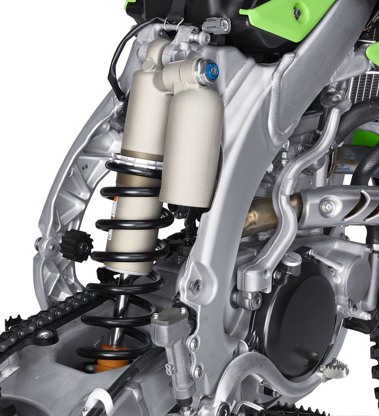 Úgy tűnik, a spórolásból előnyt próbálnak kovácsolni: ami néhány éve még csak a diszkont-chopperek jellemzője volt, már a versenysportba is beszivárgott: a 250-es KX Showa villa száranként eltérő funkcióval bír. A jobb oldali az előfeszítésért, a bal oldali a csillapításért felel.