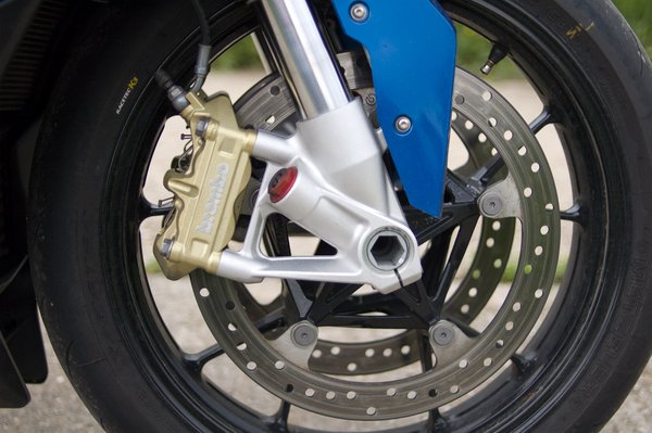 A futómű mindenhogyan, mindenfelé, széles végpontok között állítható. A konkurensek nagy része 43 mm-es belsőcső-átmérőjű teleszkópokat alkalmaz, azonban a BMW 46 mm-es párt húzott az első villakiflikbe. A teória szerint így direktebb visszajelzésekre lehet számítani. Magunkra szabhatjuk a rugó-előfeszítést, a húzó- és nyomóoldali csillapítást, továbbá a belső és a külső szárak összébb tolásával vagy széthúzásával 15 mm-es tartományban állíthatjuk a teleszkópok hosszát. A központi rugóstagon ugyanezek a beállítási lehetőségek vannak, ott excenteres betéttel oldották meg, hogy a motor fenekét 10 mm-rel feljebb lehessen emelni. Tehát van egy 35 mm-es sáv, amiben játszani lehet a vázgeometriával: mindezt úgy, hogy a motor súlypontját is vihetjük felfelé és lefelé.