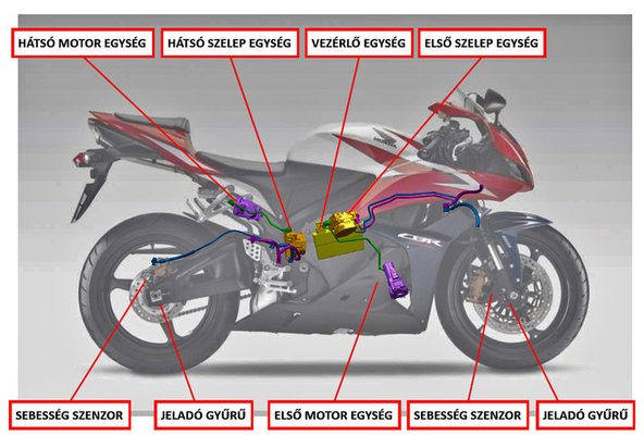 Adja magát, hogy a keréksebesség érzékelésére az ABS jeladóit használják, összehasonlítják a kerék szögsebességét az első, általában nem hajtott kerékkel. Ha a hátsó elkezd gyorsulni, akkor közbeszól. A beavatkozás mikéntje is más, így fokozottan különböző az eredménye. További okosság a rendszerben az úgynevezett egykerekezés gátló vagy lift off control. Amikor a nem hajtott kerék lassulni kezd, de a féket nem használjuk, a hajtott kerék pedig gyorsul, akkor az első kerék nincs a talajon, kicsit vissza kell venni a motorteljesítményből. Ez hasonlóan működik, mint a kipörgésgátlónál. Első lépésben az előgyújtást mérséklik, akkor a motor nyomatéka óvatosan csökken. Ha ez képtelen a kerék túlforgását mérsékelni, a tüzelőanyag befecskendezett mennyiségének csökkentése jön, majd mint vészprogram, a gyújtás lekapcsolása.