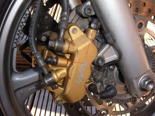Magam részéről nagyon kedvelem az egyszerű, okos mechanikus megoldásokat. A Honda a dual CBS esetében úgy oldotta meg a hátsó fékkör nyomását, hogy az első féknyereg reakcióereje működteti a hátsó fékkör főhengerét (secondary master cylinder – másodlagos főfékhenger), így a fékerő hátul arányosan változik. Ez a dugattyúátmérők arányán, illetve a mechanika ellenereje által keltett nyomáson (tulajdonképpen az első fékerőn) múlik. Egyszerű, nagyszerű. A hátsó fék is hat az első féknyergek egy dugattyúpárjára, a reakcióerő ismét rásegít a hátsó nyereg fékerejére. A japán gyártók nagy előszeretettel alkalmazzák a többdugattyús féknyergek dugattyúmegosztását az első és hátsó fékrendszer között. Sajnos ez magával vonz pár hátrányt is, az egyik, hogy leginkább osztott betéttel működne a rendszer jól, mert a hosszú betét kis felületen való nyomása nem szerencsés sem hatékonyság, sem hőleadás szempontjából: deformációkat okozhat a betét hordozóanyagán, hátlapján.