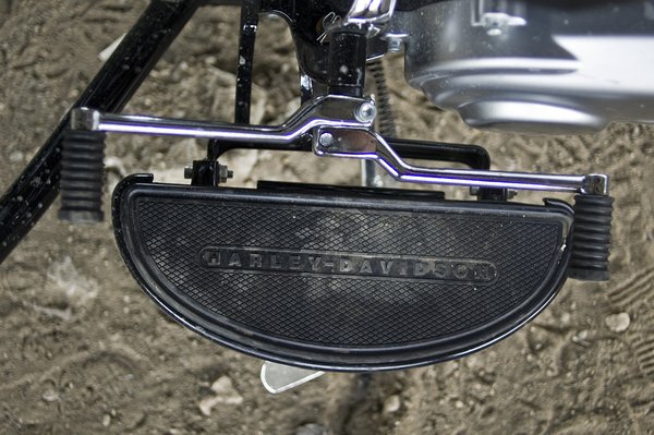 Vannak Harleyk, elsősorban Softailek, de leginkább a Cross Bones, amiken valósággal eldugják a letámasztót. Minden megállásnál kapirgálunk, mint Kukori és Kotkoda, mire előhalásszuk a lábtartó alól. A Fat Boyé igazából nincs rossz helyen, csak az én ízlésemnek túl ideges mozdulattal kell kirúgni alóla. Szerintem pedig a letámasztó lényege, hogy oda se nézve, laza sarokmozdulattal lehessen kipattintani. Ez meg nyikkan egyet, akkor is, ha behúzzuk.