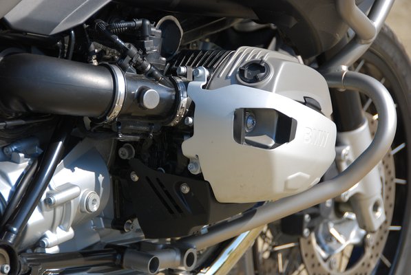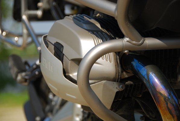 Van kormányfűtésem, elektronikus aktív futóművem enduróprogrammal (ESA II – ez beállítástól függően más-más kipörgést enged a menetstabilizáló rendszernek), állítható szélvédőm meg egy bazi, dromedár, kéthengeres boxermotorom 1200 köbcentivel, 110 lóval, oldalanként két vezérműtengellyel és négy szeleppel, két lambda-szondával. Ez a BMW szerint egy új motor, én csak azt tudom, hogy a szelepek, dugattyúk, vezérműtengely mind más – akik tartanak a régebbi GS-ek olajfogyasztásától, talán ezzel megnyugodnak, remélem, a hibát orvosolták, amikor átfésülték a blokkot.